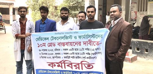 ১০ম গ্রেড বাস্তবায়নের দাবিতে কেন্দ্রীয় কর্মসূচির অংশ হিসেবে তৃতীয় দিনেও অর্ধদিবস কর্মবিরতি পালন করেছেন রাজবাড়ীর মেডিকেল টেকনোলজিস্ট ও ফার্মাসিস্টরা। বৃহস্পতিবার (৪ ডিসেম্বর) সকাল ৮টা থেকে দুপুর ১২টা পর্যন্ত রাজবাড়ী সদর…